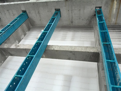合理的沉淀空间结构应包括以下要素:较小的颗粒沉降距离、能形成均匀稳定的水流、能使沉泥顺畅滑下的排泥面积。高效复合小间距斜板与传统的六角蜂窝斜管相比,斜板沉淀设备中矾花的沉淀距离也明显减少,沉淀池中流量分布更加均匀稳定,沉淀池排泥面积是普通斜管的4倍多,单位面积排泥负荷尚不到斜管的1/4,不会出现沉泥淤积、矾花翻池、斜板压塌的现象。斜板间距小充分发挥斜板的接触絮凝作用过滤去除反应不完全的胶体颗粒,从而可进一步降低出水浊度。