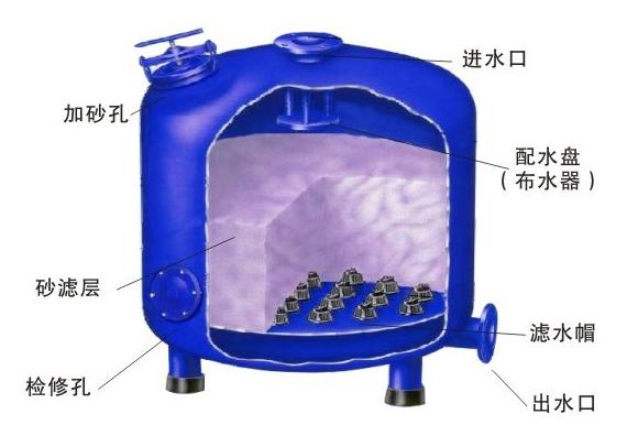 过滤系统由标准单元砂缸组成,过滤流量可从30.6立方米/小时增至2500立方米/小时。