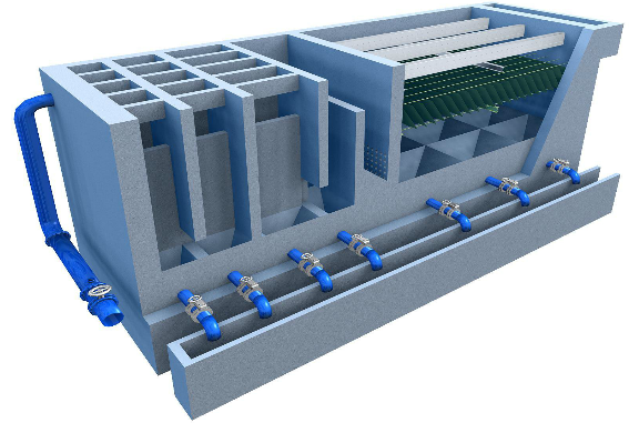 一体化净水设备基本构造包括:主体净水设备(含混合器、絮凝装置、沉淀装置、过滤装置),加药装置,消毒装置,自动控制系统等。